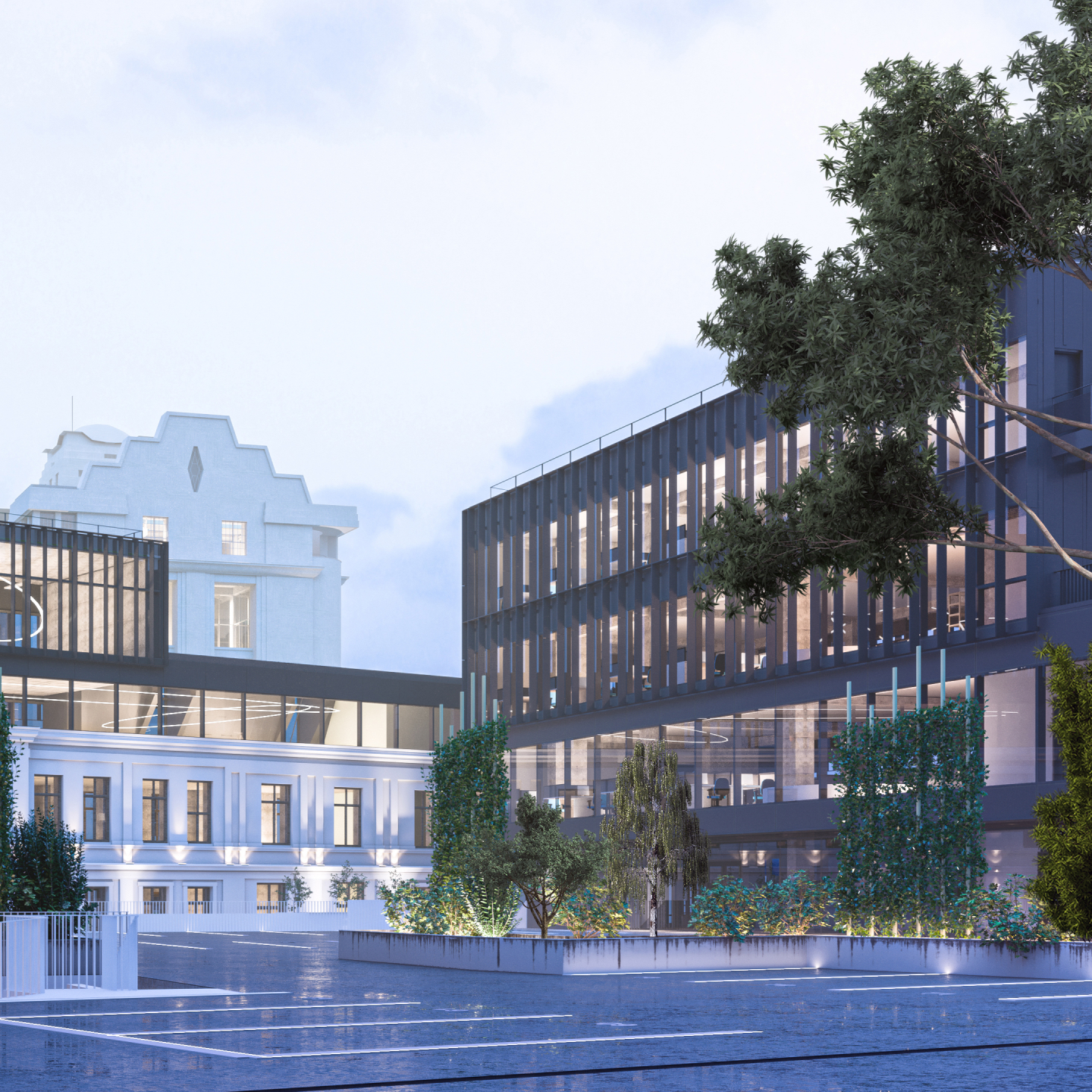 A mixed-use project that features residential, offices, co-working spaces, cultural spaces and events areas, restaurants, coffee shops, food-court, bakery, public squares, landscaping, public spaces and underground parking.
